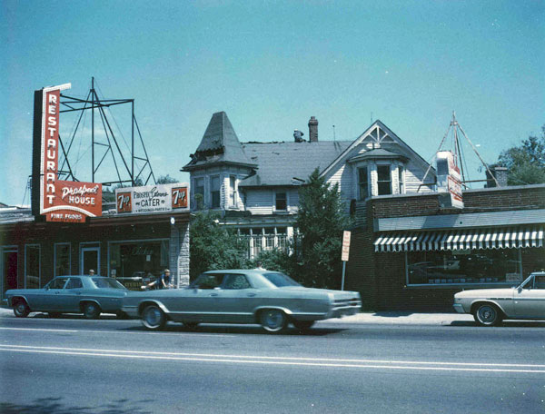 The Prospect Theater was once a center in the community. It was a classic one screen theater with a location to which hundreds of families could walk. It opened in 1950 and was big deal in a small town like Mount Prospect. This was the first real theater to open in the community and it was a sign of the community’s development. It opened the day after Christmas with Tea For Two, starring Doris Day and Gordon MacRae and Copper Canyon starring Ray Milland and Hedy Lemarr. When the Prospect Theater opened, it was the heyday of downtown theaters. Before the development of huge multiplex theaters on the outskirts of towns, the downtown theater was a mainstay of local entertainment and social life. However, with increased developments along the periphery of towns, the one screen theaters had a hard time competing with much larger theaters that were located outside of town, but had more parking. Over the years, the Prospect Theater was surpassed by these larger theaters and was not maintained. The distinctive marquee and awning were taken down when Route 83 was widened and by the time it was demolished the theater did not look like a center for local community life.
